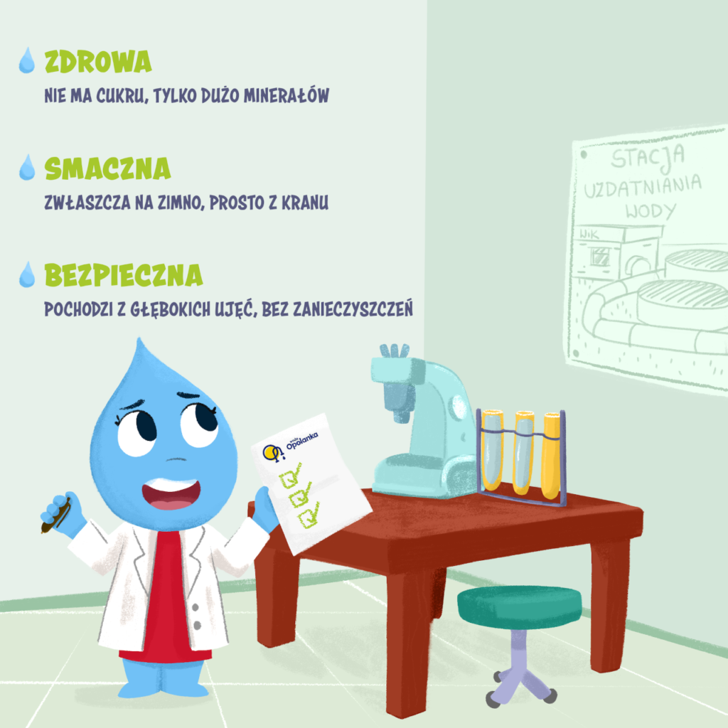 Podczas swoich przygód Elka Kropelka odwiedziła laboratorium WiK w Opolu aby dowiedzieć się o opolskiej wodzie kranowej nieco więcej! Zdobytą wiedzą postanowiła podzielić się z innymi dziećmi – wspólnie poznajcie Wodę Opolankę: